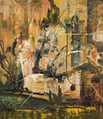 Donau-Dogarth, Oscar Robert. 1898 Wien - 1961 ebenda "Interieur in lyrischer Abstraktion" Öl auf Holz, monogrammiert: ORD, 34x30 cm (13 1/4 x 11 3/4 in), schlichter Goldrahmen mit Stoff- Passepartout, Literatur: Saur: ...