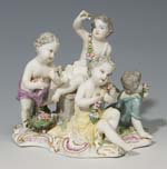 Punct, Carl Christoph. - 1765 Meißen MEISSEN-Modell um 1760, Modell-No.2502, Amorettengruppe, Allegorie "Der Frühling", partiell restauriert, Stand leicht uneben, Höhe: 16.5 cm (6 1/2 in), unglasierter Boden, Pressmarke, ...