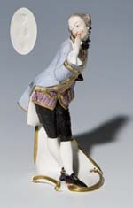 Bustelli, Franz Anton. 1723 Locarno - 1763 München, NYMPHENBURG 20.Jahrhundert, Modell-Jahr: um 1760, Modell- No.55, Komödiantenfigur aus der Serie der Commedia dell'arte, "Octavio", Gegenstück zu "Isabella", farbig ...
