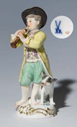 Kaendler, Johann Joachim. 1706 Dresden - 1775 Meißen MEISSEN 1959, erste Wahl, Modell-Jahr: 1740, Modell-No.25x, "Gärtnerkind", farbig bemalt, gold staffiert, Höhe: 13 cm (5 in), Ritzmarke, Pressmarke, Malermarke, ...