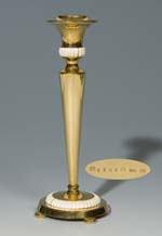 Kerzenleuchter. KOCH & BERGFELD Bremen, 925er Silber, vergoldet, godroniert, Beinringe rissig, verschraubter einflammiger Standleuchter mit konischem Säulenschaft, Punzen: Halbmond und Krone, Feingehalt, Fabrikmarke, ...