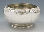 Obstschale. Zweite Hälfte 19.Jahrhundert, 13lötiges Silber, godroniert, am Rand Blüten-Rocaillen- Bordüre, gedrückte Kugelform über profiliertem Standfuß, am Boden graviertes Monogramm H, ø 23 cm (9 in), Punzen: Feingehalt, ...