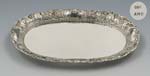 Likörtablett. ADAM MANNS & SOHN Doernigheim bei Hanau, 800er Silber, reliefiert, ovale leicht gemuldete Form, Fahne mit Blüten-und Rocaillendekor, Punzen: Feingehalt, Fabrik- marke, Breite: 24.5 cm (9 5/8 in), 214 ...