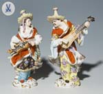 Meyer, Friedrich Elias. 1724 Erfurt - 1785 Berlin, MEISSEN nach 2000, erste Wahl, Modell-Jahr: 1751, Modell-No.67035, 67036 (alte Form-No.1569,1576), "Malabar" und "Malabarin", farbig bemalt, gold staffiert, runde ...