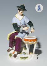 Meyer, Friedrich Elias. 1724 Erfurt - 1785 Berlin MEISSEN 2006, erste Wahl, Modell-Jahr: 1748-1761, Modell- No.65664 (alte Form-No.E 44), "Japaner mit Kesselpauke", farbig bemalt, gold staffiert, Höhe: 13.5 cm (5 1/4 ...