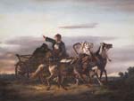 Kaiser, Friedrich. 1815 Lörrach - 1890 Berlin "Rasante russsiche Troika-Fahrt" Öl auf Leinwand auf Holz, monogrammiert, 56.5x74 cm (22 1/4 x 29 1/8 in), vergoldeter Stuckrahmen, Literatur: Goldstein: Monogrammlexikon, ...