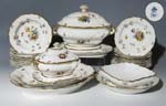 Russisches Speiseservice. Zar Nikolaus I., LOMONOSSOW Kaiserliche Porzellanmanufaktur ST.PETERSBURG 1825-1855, zwei Essteller Popow Moskau-Gorbunowo, Reliefdekor "Neu-Brandenstein", reiche farbige Bemalung, "Blumen-und ...