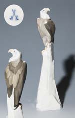 Walther, Paul. 1876 Meißen - 1933 ebenda MEISSEN 1906-1923, erste Wahl, Modell-Jahr: 1906, Modell- No.X 181, "Seeadler auf Felsen", naturalistisch bemalt, Höhe: 41 cm (16 1/8 in), Ritzmarke, Pressmarke, blaue Schwertermarke, ...