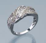 Diamant-Brillant-Ring. 585er Weißgold (14 ct) zahlreiche kleine Brillanten und Diamant-Baguettes, circa 1.5 ct, stabile Schiene, Ringgröße: 59, 6.3 Gramm