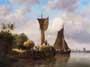 "Segelboote und Pferdefuhrwerk mit Heu beladen"