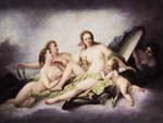 Bildplatte.KPM BERLIN 1908 farbige Bemalung nach William Hilton II (*1786-1839 London) "Entführung der Europa" leicht gewölbte Rechteckform, 14.5x22.5 cm am Rand minimal bestoßen, im Holzrahmen rückseitig bezeichnet, Preßmarke Zepter K.P.M. ...