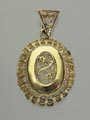 Anhänger.18ct Gelbgold filigran gearbeitet, ovale gewölbte Form mit dreieckiger Öse, Länge: 3.5 cm (1 3/8 inch), 5.2 Gramm