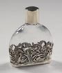 Flakon.925er Silber-Montierung mit durchbrochen gearbeitetem Schwan-und Schilfdekor ovaler, beidseits abgeflachter farbloser Glas-Korpus zylindrischer Schraubverschluß, Höhe: 7.5 cm (3 inch)