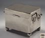 Zuckerdose.800er Silber, innen vergoldet Barockform, allseits gebauchter, an den Ecken profilierter rechteckiger Korpus, der gewölbte Scharnierdeckel mit überstehendem Rand, Breite: 16.5 cm (6 1/2 inch), 400 Gramm