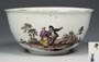 Große Kumme.MEISSEN Mitte 18.Jahrhundert farbige Bemalung, beidseits "Bäuerliche Genreszenen" nach Vorlagen des niederländischen Malers David Teniers II. (1610 Antwerpen-1690 Brüssel) sogenannte "Tenier-Bauern", seitlich ...