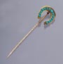 Türkis-Nadel.750er Gelbgold 14 kleine Türkise, seitlich durchbrochen gearbeitete Hufeisen-Form, Länge: 2.5 cm (7/8 inch)