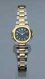 Damen-Armbanduhr.PATEK PHILIPPE Genéve Gelbgold/Stahl-Gehäuse, seitlich verschraubt, Quartz-Werk Gelbgold/Stahl-Armband "Nautilus" stell inox mit Faltschließe schwarzes Zifferblatt, goldene Strichzahlen, Datum 6x30x27mm, ...