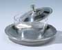 Art Déco-Dose.Württembergische Metallwarenfabrik Geislingen 1.Hälfte 20.Jahrhundert, Werksentwurf, versilbert 3-teilig, schlichter zylindrischer farbloser Glaskorpus Deckel und Unterschale mit stilisiertem floral reliefiertem Randdekor, ...
