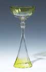 Jugendstil-Champagnerkelch. FERDINAND VON POSCHINGER Oberzwieselau um 1900 farbloses optisch geblasenes Glas, partiell lindgrün lasiert halbkugelige Kuppa über profiliertem Balusterschaft und hohem trichterförmigem ...
