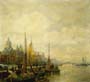 Gehrig Jacob. 1846 Flawil/Schweiz - 1922 München "Venedig" mit reicher Bootstaffage Öl/Leinwand, signiert, originaler Keilrahmen 22.5x42 cm (8 3/4 x 16 1/2 in), rückseitig Reste alter Klebezettel, breiter Profilrahmen, ...