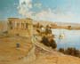 Kircher Alexander. 1867 Triest - 1939 Dresden "Südliche Ruinenlandschaft" mit Boot-und Personenstaffage Gouache, signiert, 38x48 cm (15x19 in), im Passepartout breiter verglaster Eichenrahmen mit Goldleiste, Literatur: Thieme-Becker, ...