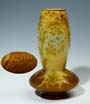 Jugendstil-Vase.NANCY Emile Gallé 1900-1910 farbloses Glas mit lachsfarbenem opakem Unterfang, honiggelb und lindgrün überfangen, umlaufend floral geätzt, gebauchter Korpus mit hohem schlanken Hals, am Ansatz Ätzsigantur Boden ...