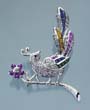 Vogel-Brosche.750er Weißgold zahlreiche kleine Brillanten 0.5ct, blaue und gelbe Saphire 0.7ct, Rubine 0.6ct, 4 kleine Smaragde "Pfau auf Blütenzweig", 3.5x4 cm (1 3/8 x 1 1/2 in)