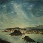Frank Sepp (Josef). 1889 Miesbach - 1970 Feldafing "San Sebastián/Spanien" an der französischen Grenze Öl/Holz, signiert, datiert: 1926, rückseitig alter Klebezettel: Münchner Secession, bezeichnet, am Rand partiell ...