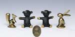 4er Satz Wiener Bronzen.HAGENAUER Werkstätten Messingguß, partiell schwarz patiniert, signiert Paar "Teddybären" "Hase" "Eichhörnchen" Höhe: 3 cm (1 1/4 in), Made in Austria, Kreismarke WHW