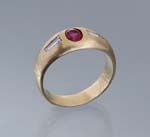 Rubin-Diamant-Ring.750er Gelbgold, mattiert,