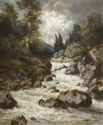 Halberg-Krauss Fritz.1874 Stadtprozelten-1951 Prien/Chiemsee "Wasserfall am Hintersee", Ramsau im Berchtesgadener Land, Öl auf Karton, signiert, rückseitig auf altem Klebezettel bezeichnet, 55x45.5 cm (21 5/8 x 18 in), ...