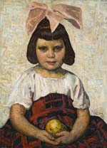 Heilemann Ernst. 1870 Berlin - 1936 "Kinderbildnis", Öl auf Karton, monogrammiert, datiert: (19)20, 58.5x42.5 cm (23 x 16 3/4 in), Passepartout, verglaster vergoldeter Stuckrahmen, Literatur: Thieme-Becker, Pfisterer: ...
