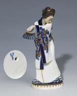 "Japanerin mit Fächer", kobaltblaue Unterglasurmalerei,