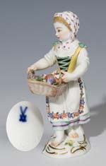Gärtnerkind. MEISSEN 1958, erste Wahl, Modell von Johann Joachim Kaendler 1740, Modell-No.26, farbig bemalt, gold staffiert, Rocaillensockel, Höhe: 12 cm (4 3/4 in), Ritzmarke, Preßmarke, blaue Schwertermarke, Literatur: ...