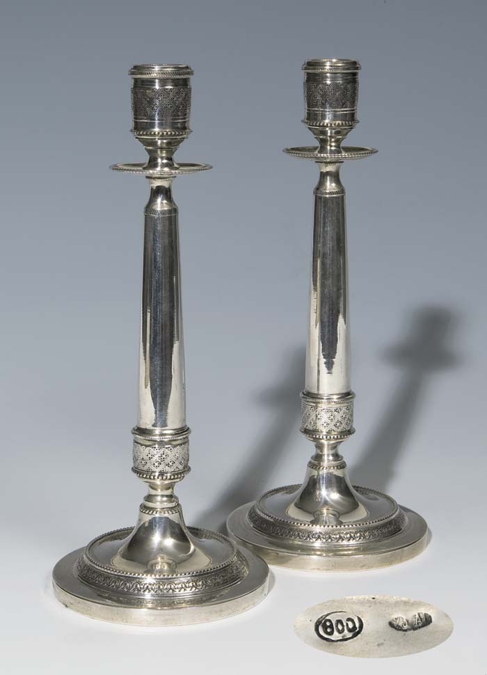 800er Silber, einflammige Standleuchter mit zylindrischen