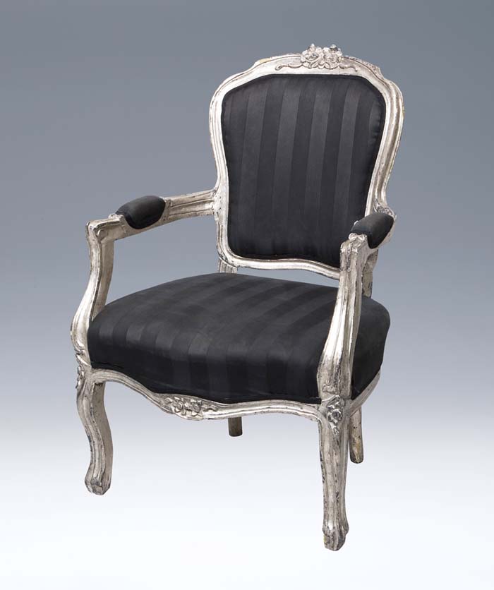 Holz geschnitzt, silber gefasst, Sitz, Rücken und partiell