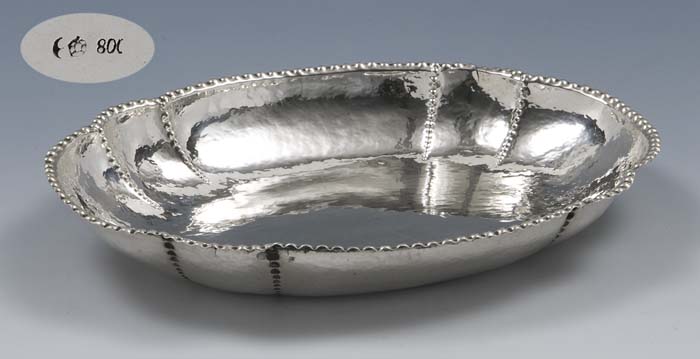 ovale Form mit Perlleisten-Relief und Hammerschlagdekor,