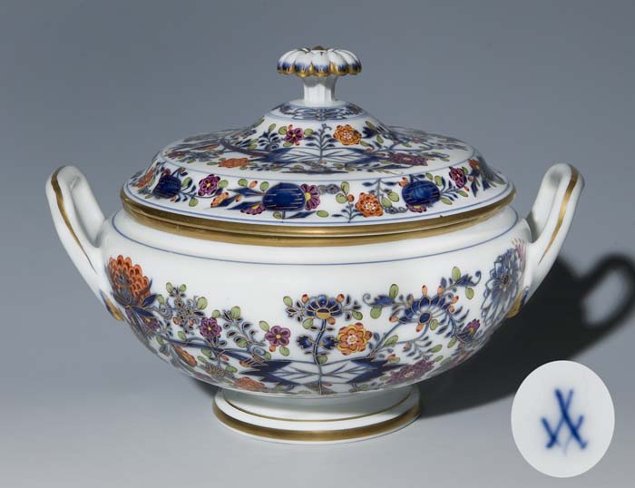 kobaltblaue Unterglasurmalerei, "Zwiebelmusterdekor",