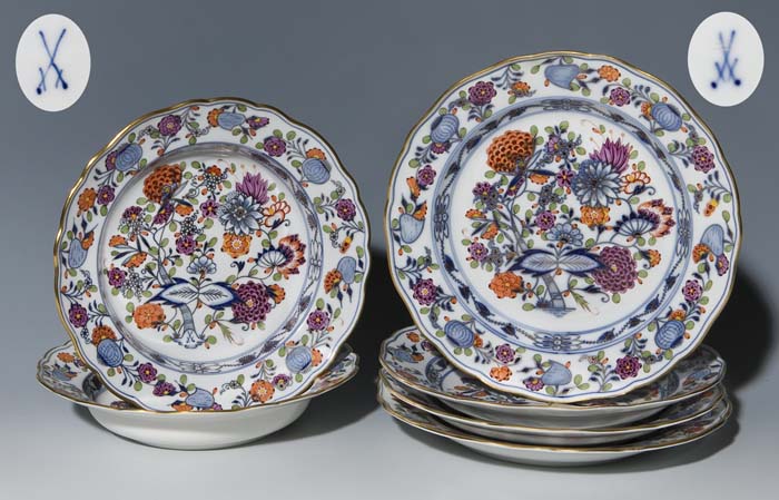 6er Satz Teller. MEISSEN 1880-1923, zweite Wahl,