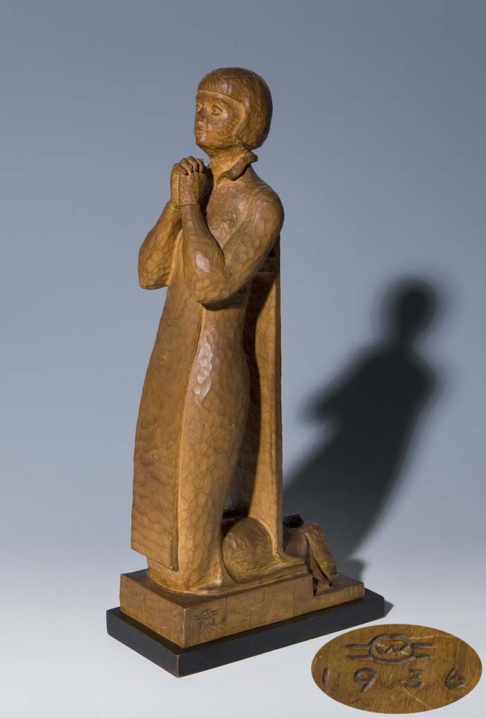 "Betende", Holz, vollplastisch geschnitzt, ungefasst,