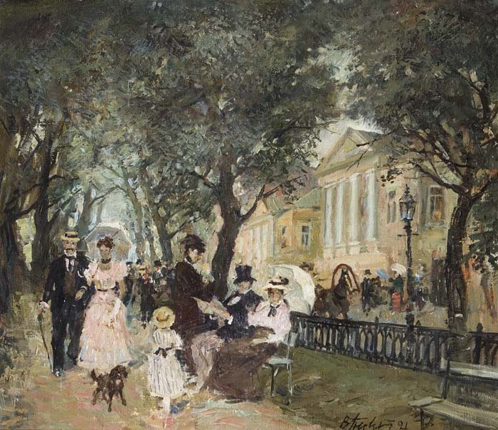 vielfigurige Genreszene im Stil der Belle Epoque,