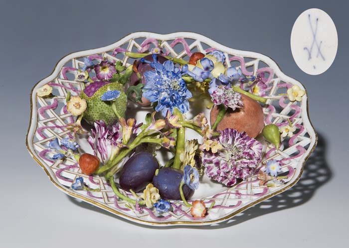aufgelegtes und naturalistisch bemaltes Blumen-Früchte-
