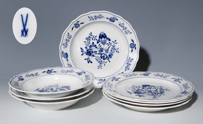 8er Satz Blaudekor-Teller. MEISSEN 1953-1971,