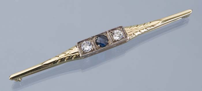 Diamant-Saphir-Stabbrosche. 585er Gelbgold (14 ct),
