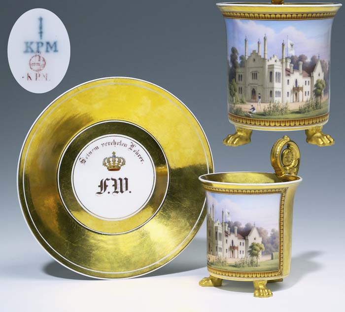 Ansichten-Tatzentasse, Untertasse.KPM BERLIN 1837-1844