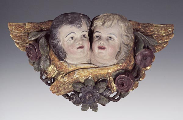 Paar einander zugewandte Engelsköpfe mit pausbackigem