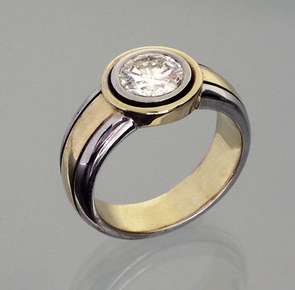 Brillant 1.265ct p in runder Fassung, schwere Bandringform mit