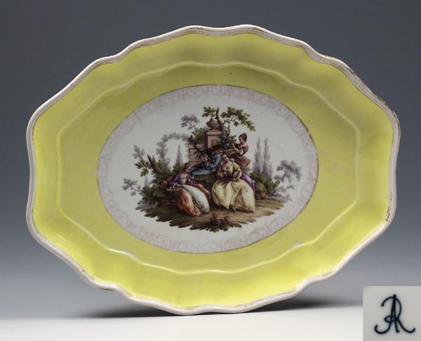 ovale passig geschweifte, leicht gemuldete Form, gold berieben