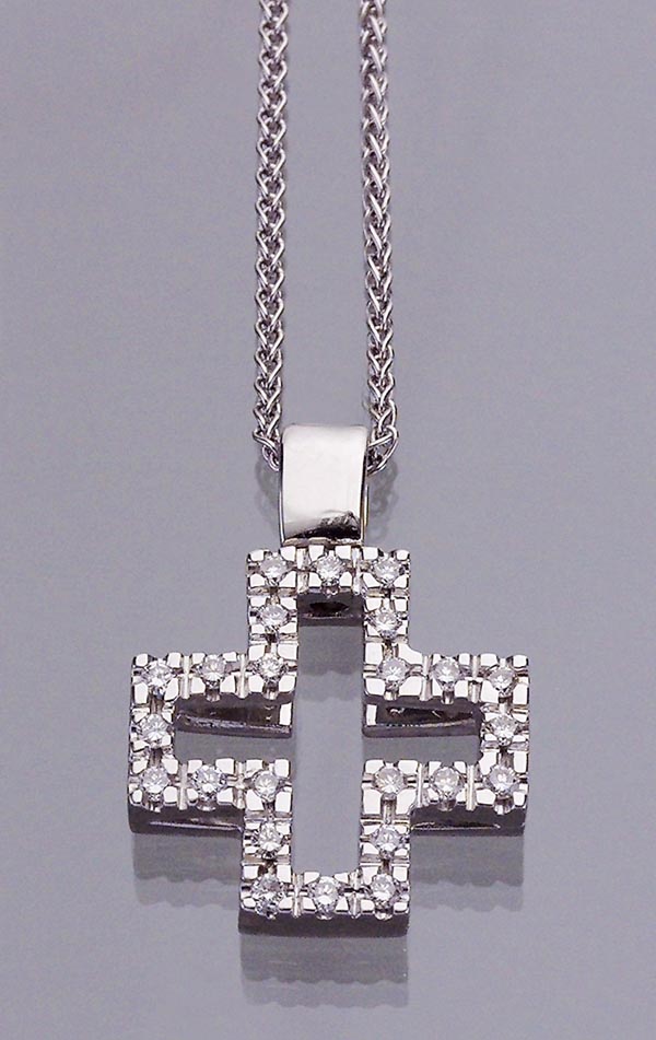 Brillant-Kreuzanhänger, Kette.750er Weißgold