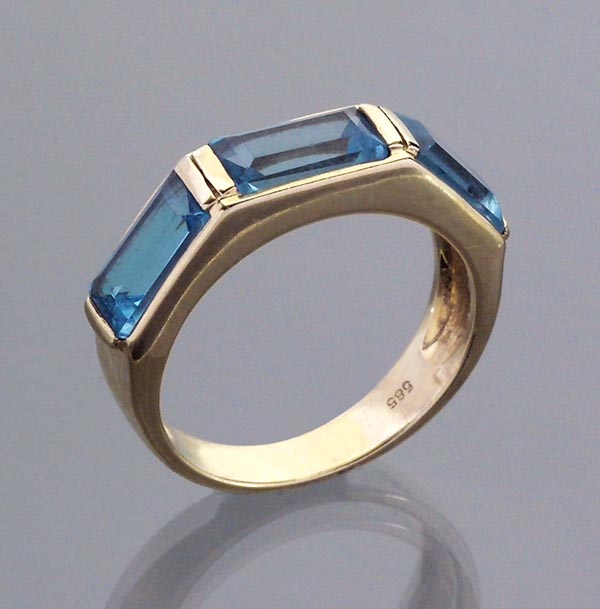 3 Aquamarin-Baguetten, gewölbte Bandringform mit